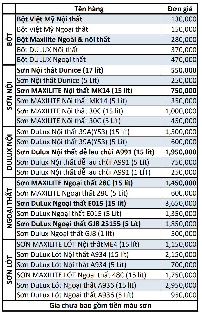 Trang chủ - SƠN NƯỚC - Bảng giá sơn nước